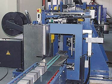 | 傳輸系統(tǒng)將料垛運(yùn)至綁扎系統(tǒng),再自動(dòng)綁扎1至4處 | ||
